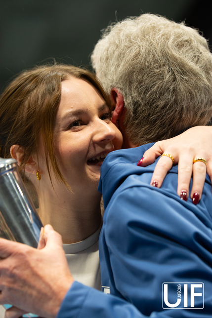 Midt i festen og den skønne stemning blev Julie Hansen overrasket af Formanden for UIF og kåret som Årets træner 2026 – til stor glæde og tydelig bevægelse.