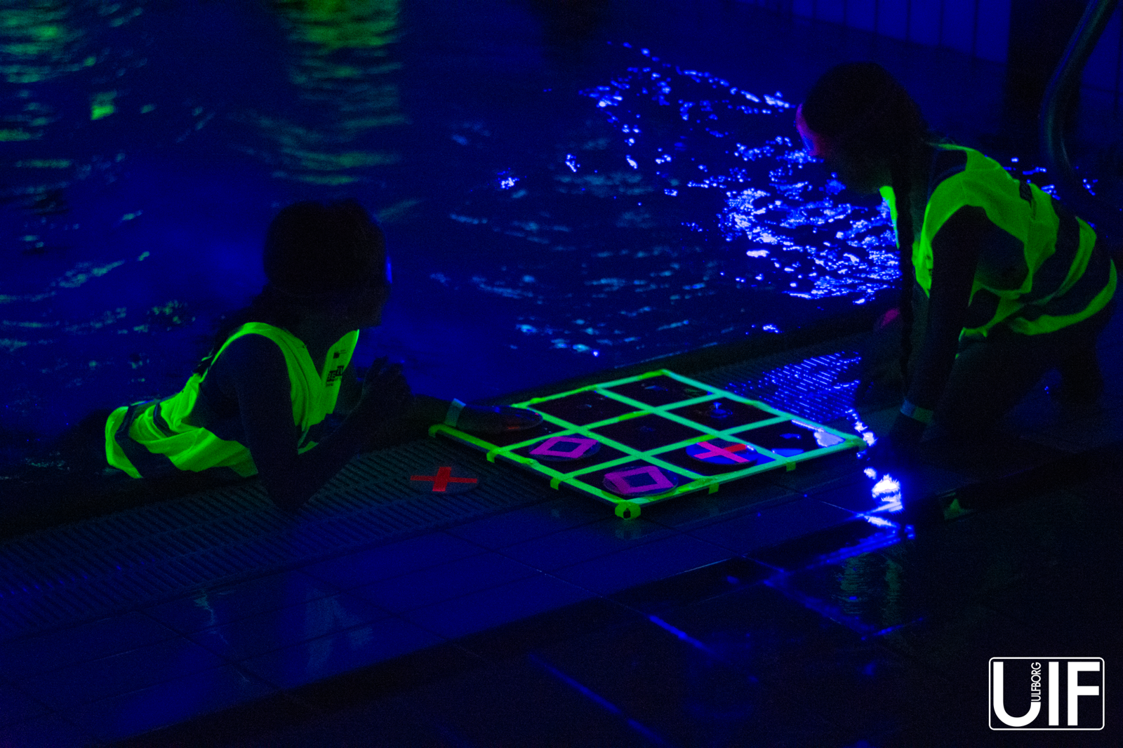 Vi havde slukket lyset og badet bassinerne i neon. Gæsterne lyste op med både veste og godt humør - og spredte en fantastisk stemning!